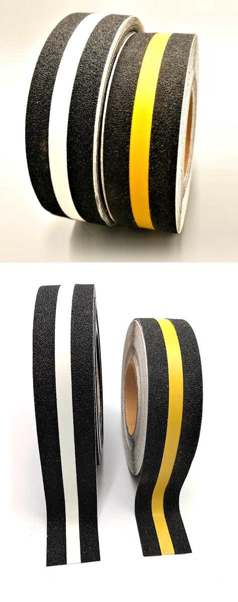 Traction Grit Tape with inserted warning stripe for quick and effective application
